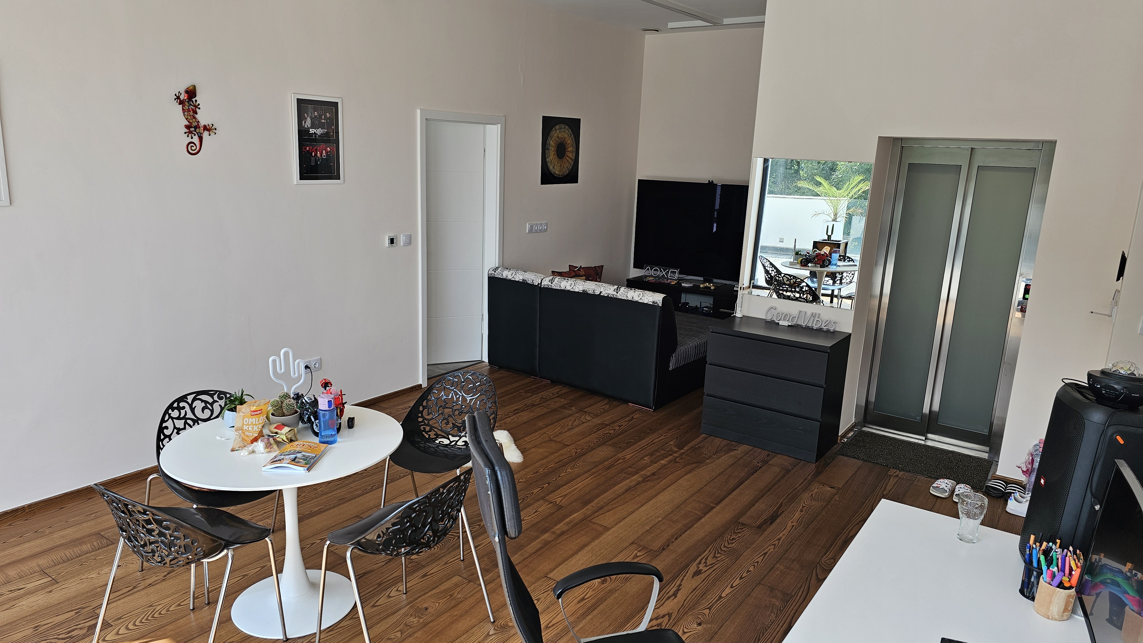 A ház vakító fehér színe, a belső műszaki megoldások, a dupla nappali, a wellness részleg, a moziszoba, a party szoba,a pánikszoba, a 6 hálószoba, a home-office panorámás káddal,a hatalmas pálmafás teraszok, a kivételes panoráma, a különösen tiszta levegő, mind-mind a luxust hozza el a mindennapokba.